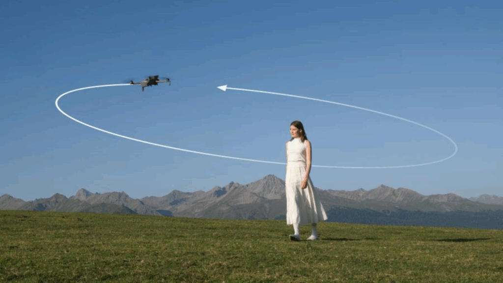 E tem mais: o ActiveTrack 360° recebeu uma atualização poderosa. Agora, o drone reconhece cenários e ajusta automaticamente a forma de rastrear objetos. Assim, se você estiver caminhando na praia ou pedalando em uma trilha, o Mini 5 Pro adapta o comportamento de voo para garantir um acompanhamento mais natural e fluido.