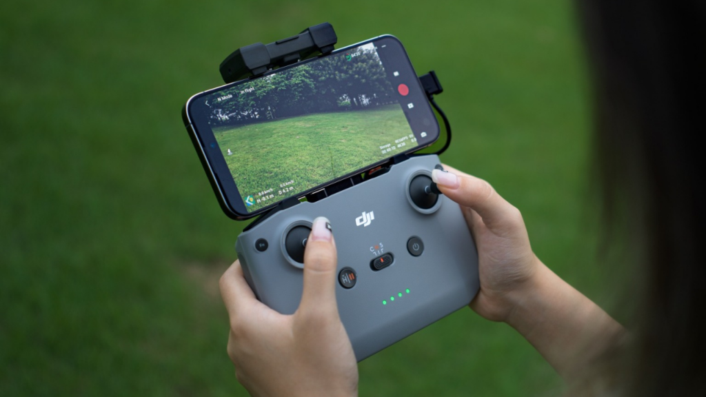 A resposta é mais simples do que parece. O controle do drone se conecta diretamente a ele por meio de um rádio próprio, ou seja, essa comunicação não depende da rede do celular. Enquanto isso, o smartphone atua apenas como uma tela, rodando o aplicativo do drone e exibindo a imagem da câmera, os dados de voo e o mapa em tempo real.
